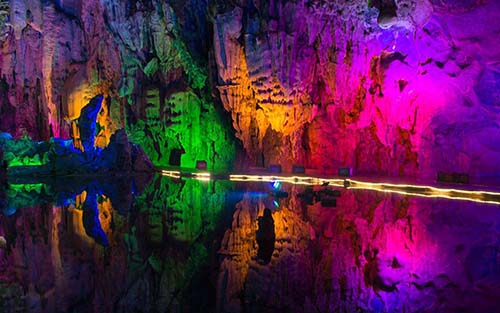 太乙洞相傳是太乙真人下凡為治理水患,造福民眾掘鑿的過(guò)水涵洞。主洞全長(zhǎng)2000余米,有支洞8條,大小景點(diǎn)100余處。這些自洞頂向下垂懸的石頭叫“鐘乳”,從地面向上生長(zhǎng)的叫“石筍”,這種奇特的景觀必須經(jīng)過(guò)漫長(zhǎng)的歲月才能孕育而成,堅(jiān)持不懈,平凡也能變卓越。